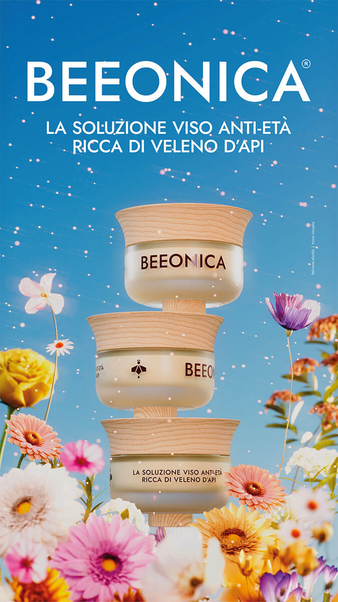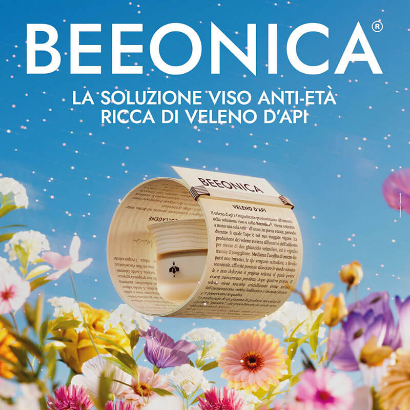 Il veleno d'api infatti, è composto principalmente da un potente peptide denominato melittina che induce massivamente la riproduzione di collagene ed elastina nella pelle grazie all'alta percentuale inserita all'interno della soluzione viso e collo BEEONICA®, sviluppata in collaborazione con il laboratorio TNHLab del Politecnico di Torino.