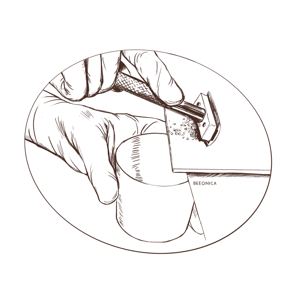 Per estrarne i principi attivi, ci avvaliamo degli ultrasuoni per copiare il DNA della pianta. Questa tecnica ci permette di ottenere una soluzione stabile, contenente la maggior parte dei componenti bioattivi e inalterati della pianta, per inserirli all’interno della soluzione viso e collo BEEONICA® fino a saturazione.
